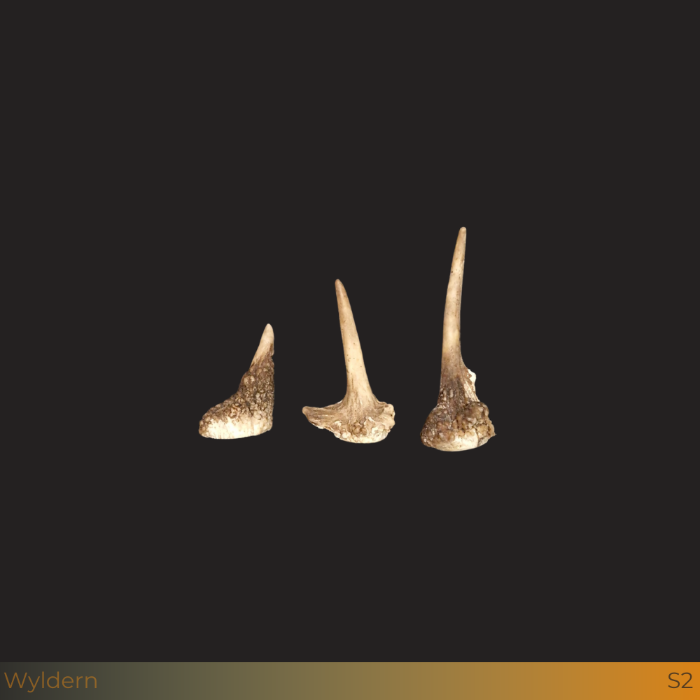 Drie echte spitser stangen van damhert , variërend in lengte van 6 tot 12 cm. Perfect als stijlvolle decoratie. Authentiek, karaktervol en ideaal voor een landelijke of rustieke inrichting.