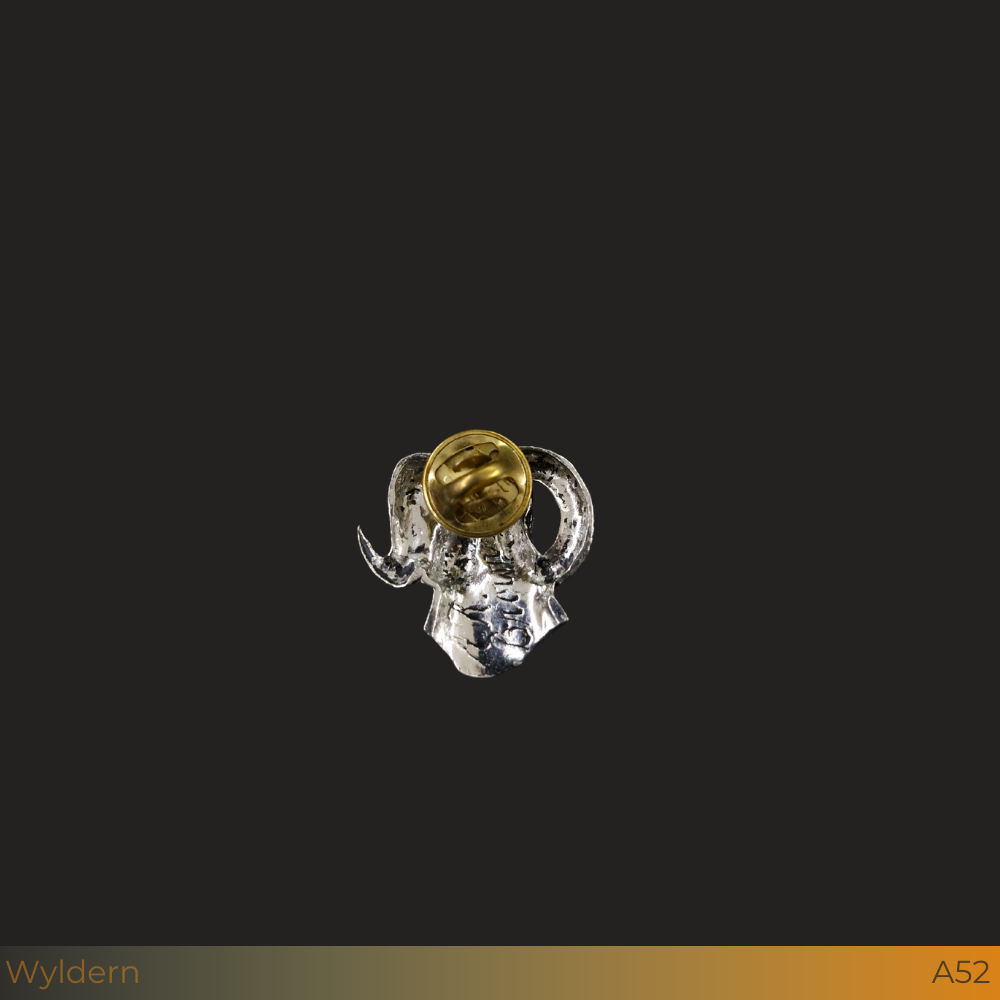 Een handgemaakte tinnen pin van een Moeflon, voorzien van een stevige vlindersluiting. Een stijlvol accessoire met oog voor detail het is perfect voor op de jas, pet, hoed of rugzak.