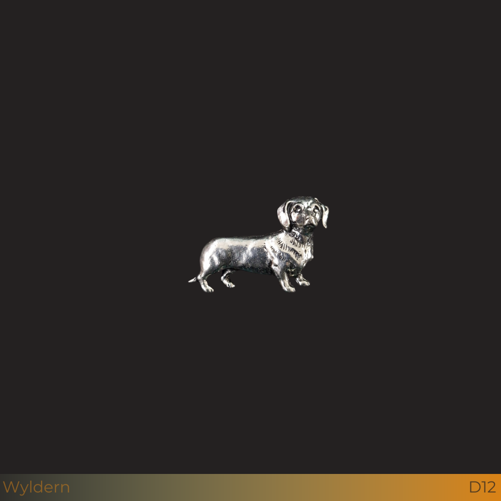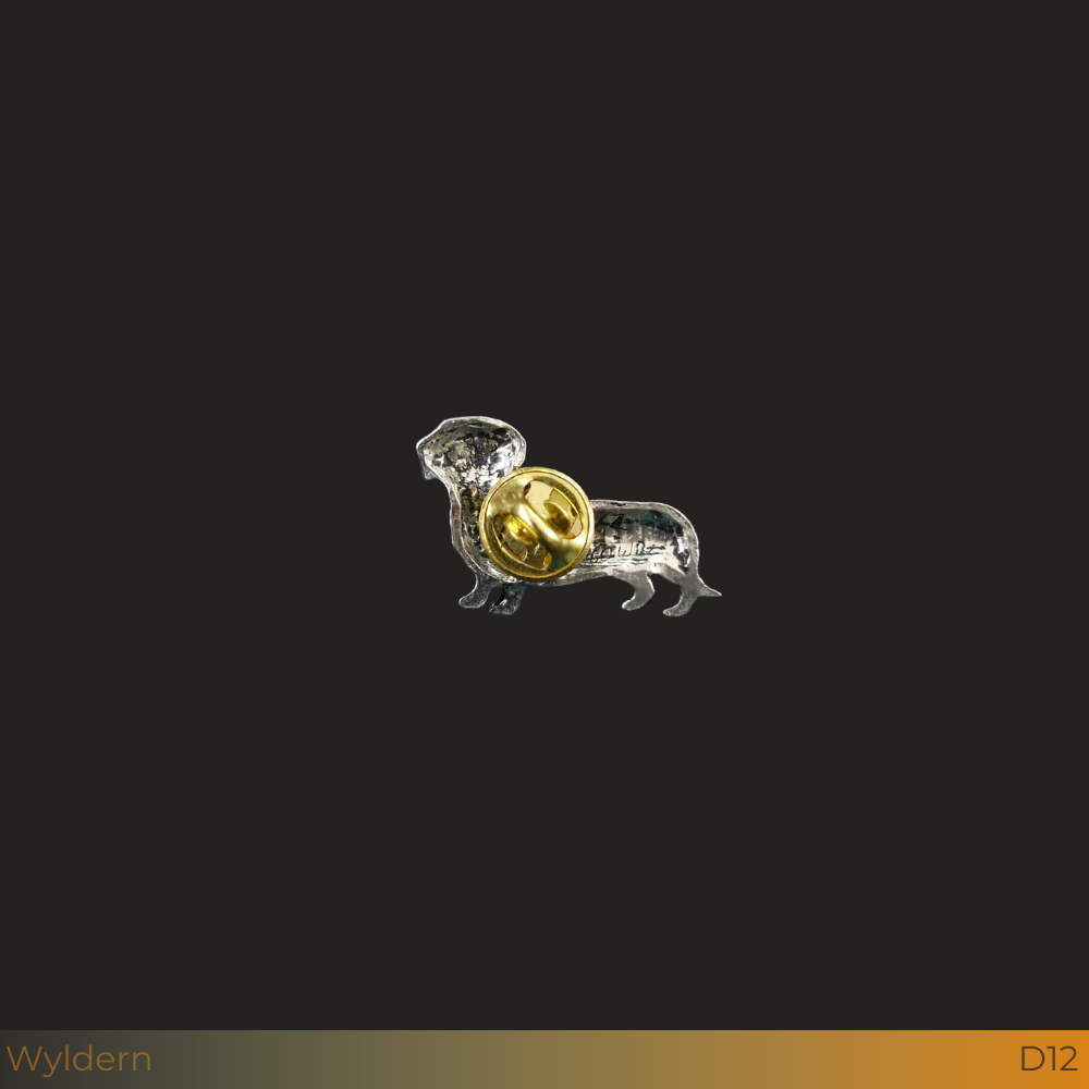 Een handgemaakte tinnen pin van een Teckel, voorzien van een stevige vlindersluiting. Een stijlvol accessoire met oog voor detail het is perfect voor op de jas, pet, hoed of rugzak.
